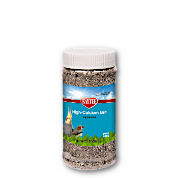• In a separate, small dish (the cap of a small spice jar), "Kaytee High-Calcium Grit". Eventually, it will be "tossed" about the cage, but it's available at all times.