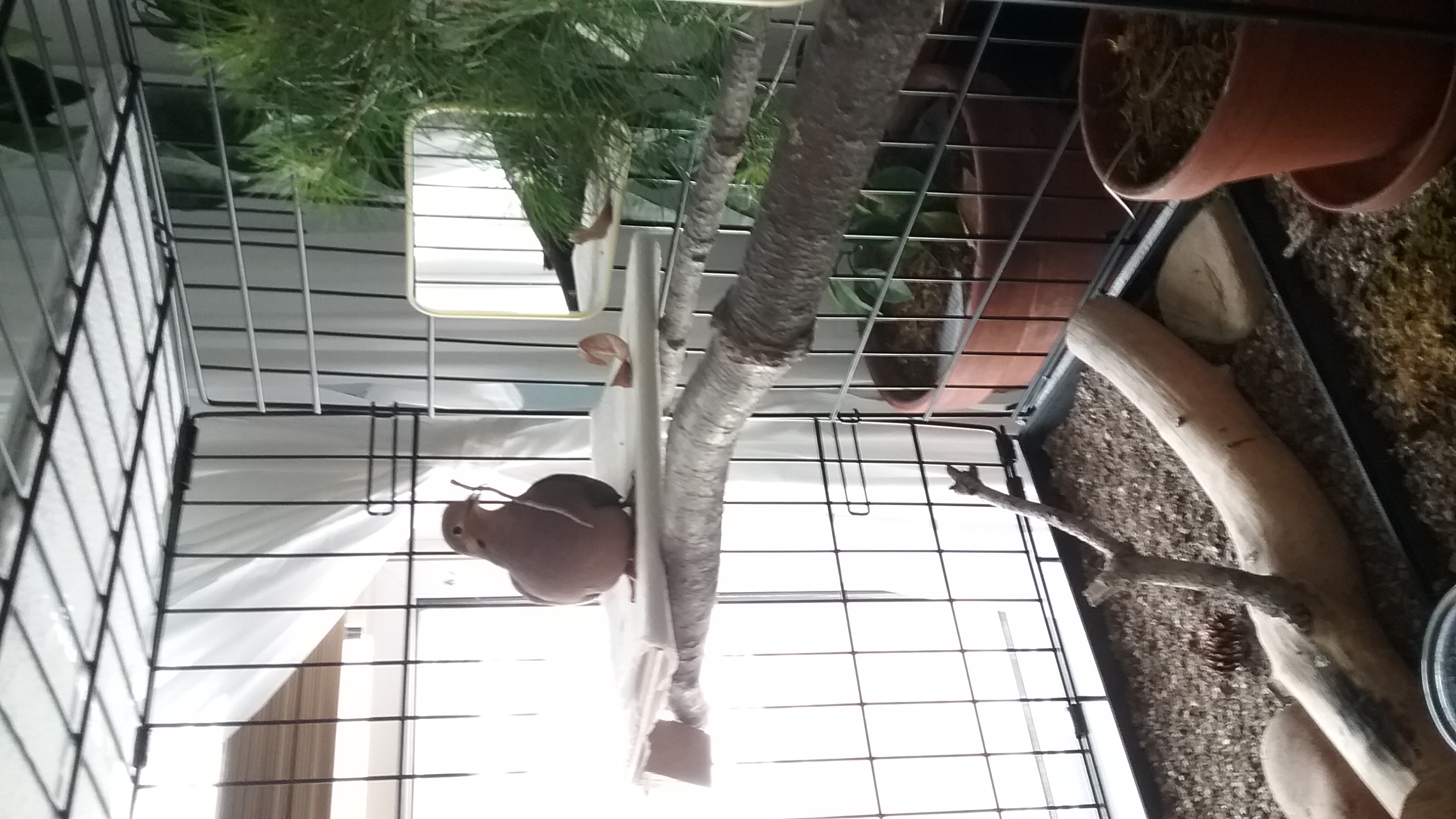 Out-side, the sun was trying to make its way through the remaining clouds of last night, a breeze blew quite crisp (for the end of March), but as I made my way into Yonah's room, it was delightfully warm and the day-light was filtering thought the blinds and curtains. In his house, Yonah was stretching his wings, making ready for that first “hop” of the day, from perch-to-perch.