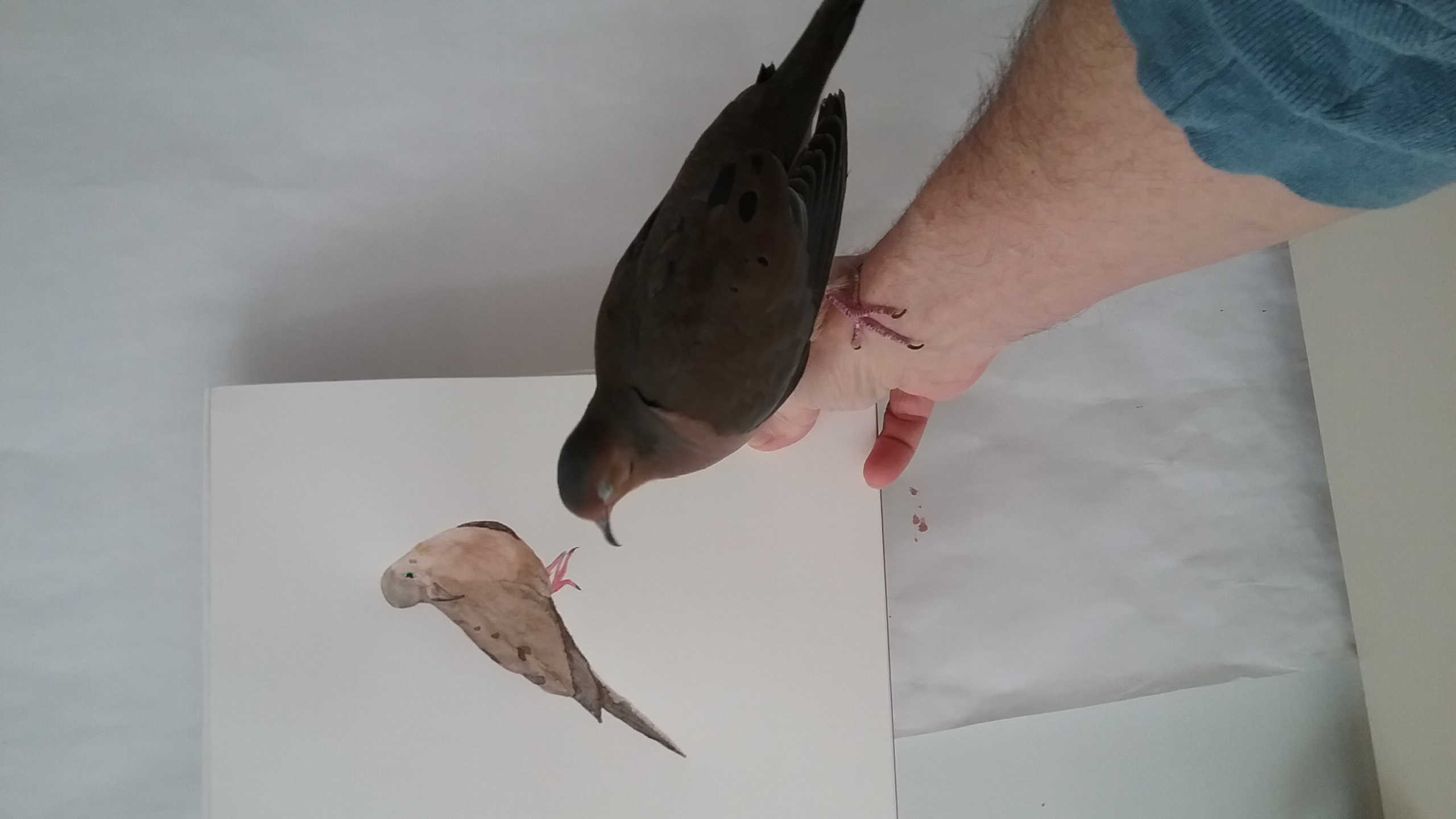 It was SO touching! Even with-out my interjection of speculation and such, to see him standing there! It's becoming difficult to think of him as a mourning dove... a little bird from the back yard... He's behaving more and more like a “toddler” or, what would be expected from a puppy! He's AMAZING! And if I weren't LIVING this experience, I probably wouldn't believe it if some-body else were to tell me these episodes! But they're TRUE! No exaggeration, even in the slightest. Yonah shows MORE “thought” than I've yet to see documented in my research.