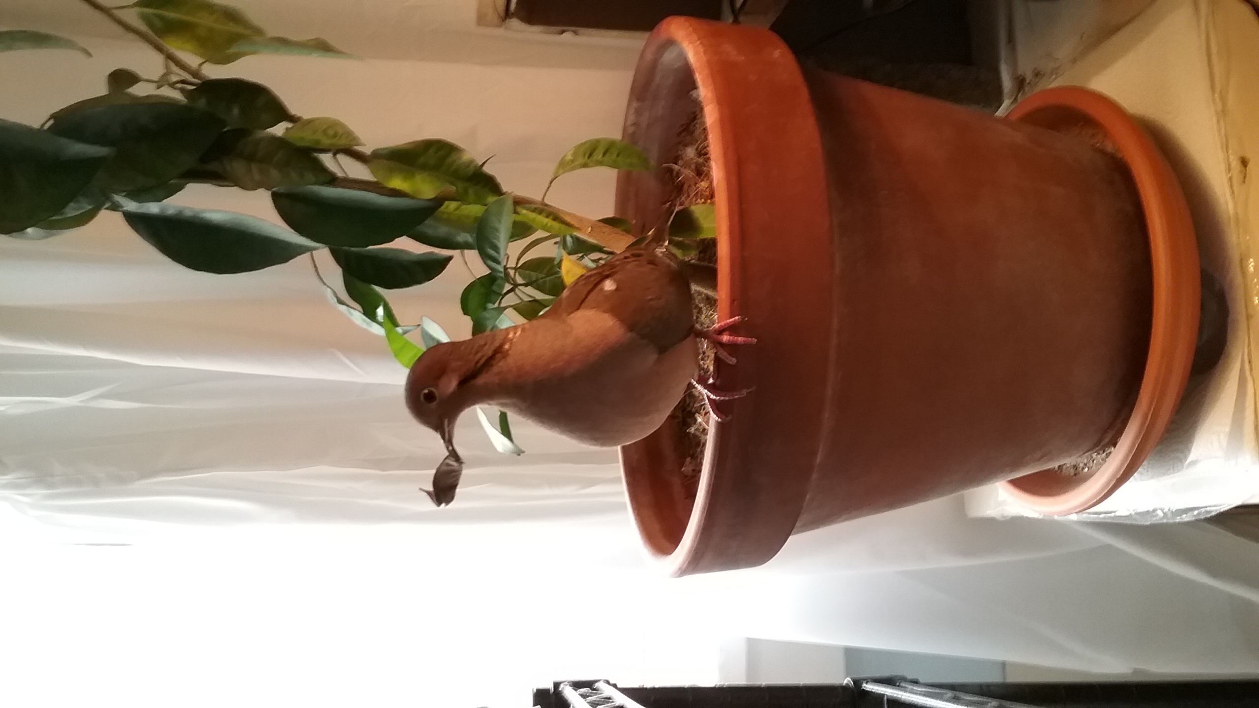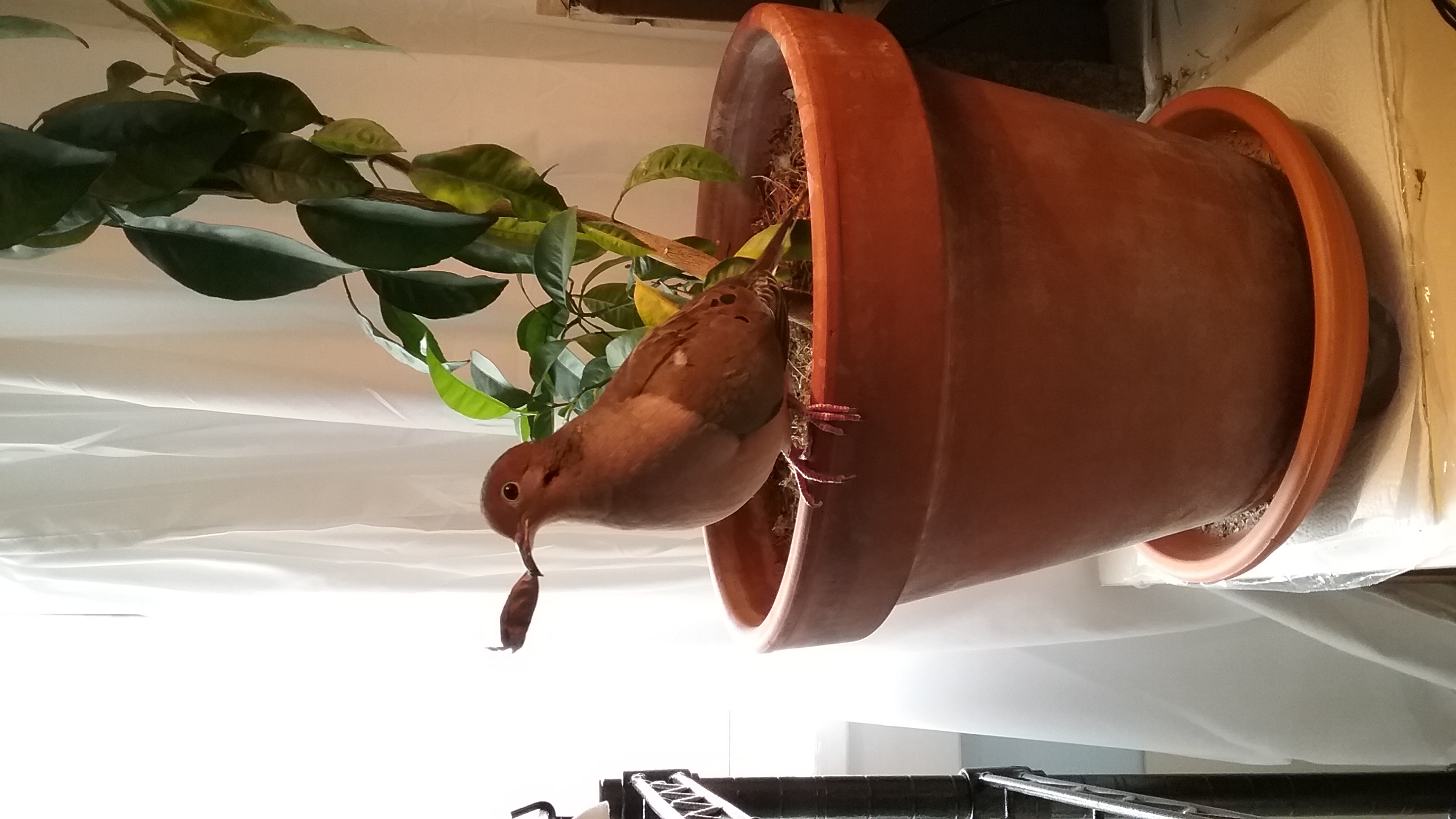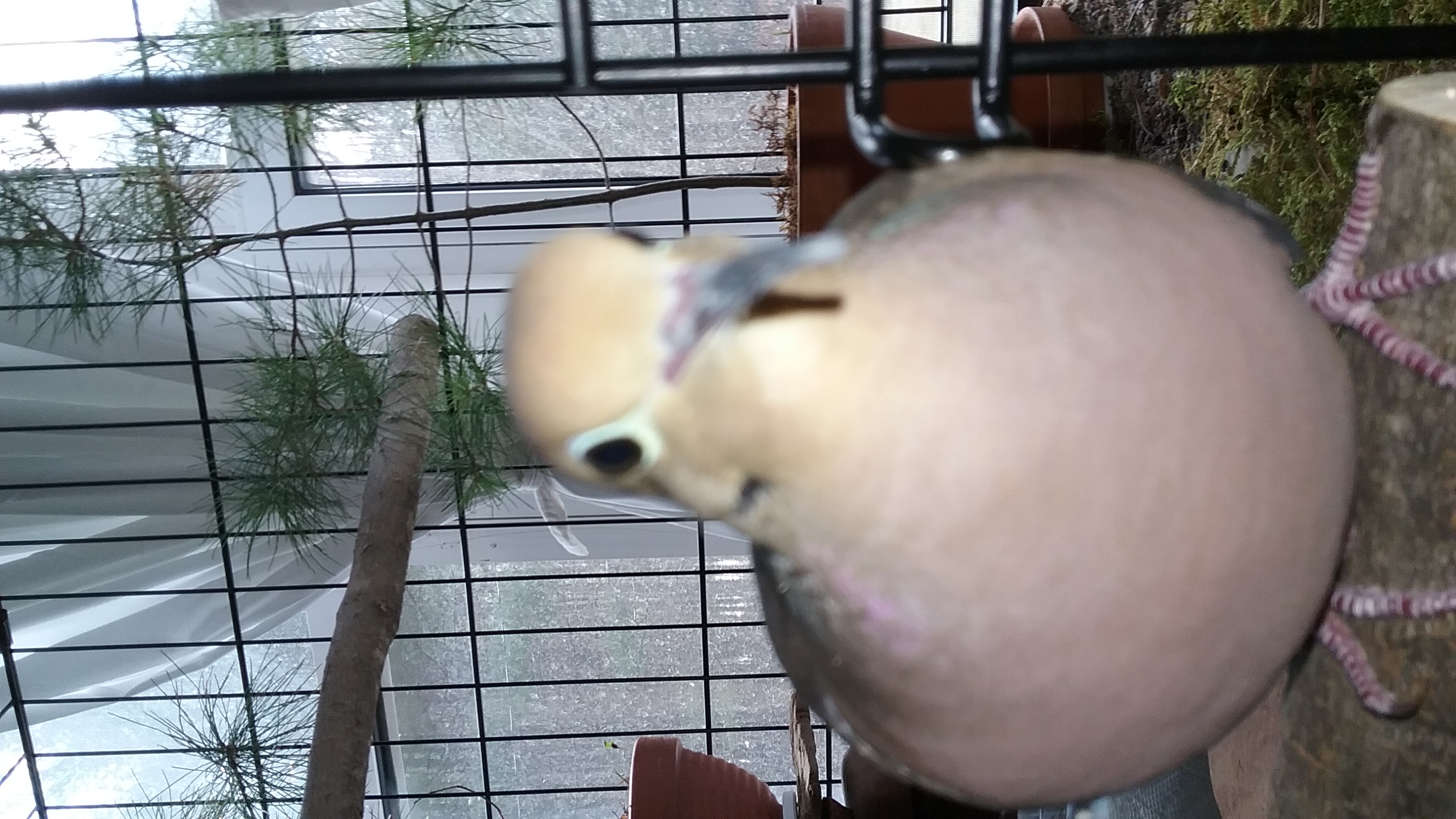 It was a day that was EXTREMELY difficult to see turn to an evening! (Especially seeing Yonah sorting through twigs and such even as late at 19.00!) But, by 19.30, he was up on his perch, and then to the door perch and... The sun had only just recently dipped behind the Western mountains so there was still quite a but of light left to the evening. But, again... mourning doves tend to “settle” round about 19.30 of an evening... and so, those out-side were, by then, already off to their night perches. And there's the need of 10-14 hours of rest... and GOODNESS! After all his work today and travelling and such... SURELY Yonah would be looking forward to settling down and tucking-in... (and he WAS up and about at 6.30 this morning... he was heading for a solid 13 hours of being up and about).