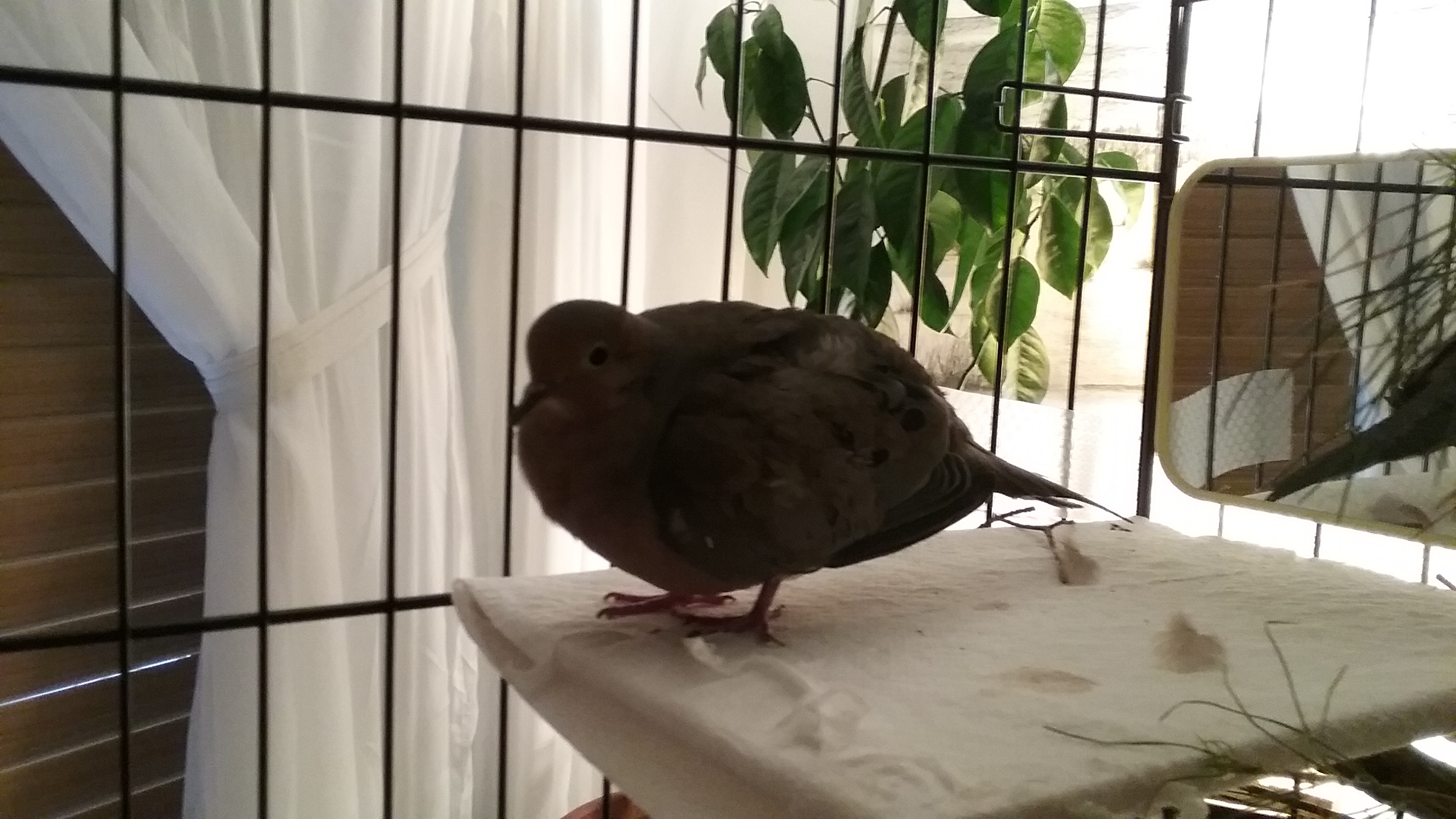 One thing though, that I particularly noticed this evening: The Yardies came round, as they do, and the mourning doves came by for their evening meal and I'm REALLY noticing how much darker Yonah's feathers are, compared to theirs. The doves out-side are various shades of "beige", over-all, and Yonah's feathers are shades of "brown" and very noticeably darker. I've read that dark-colours can be a sign of "liver" troubles. (As a matter of fact, I'm reading several sources that say that birds who are "granivores", whose diet consists, primarily of seeds, tend to have a lot of "liver" troubles... I'm concerned now, but, I know that Yonah gets a bit of variety in his diet... with the pellets of the "ZuPreem Pure Fun"... with little fruit and vegetable pellets. Still, I have to wonder if it's actually "enough".) Anyway, thankfully, we have an appointment come Thursday. The veterinarian will tell me whether or not I ought to "worry".