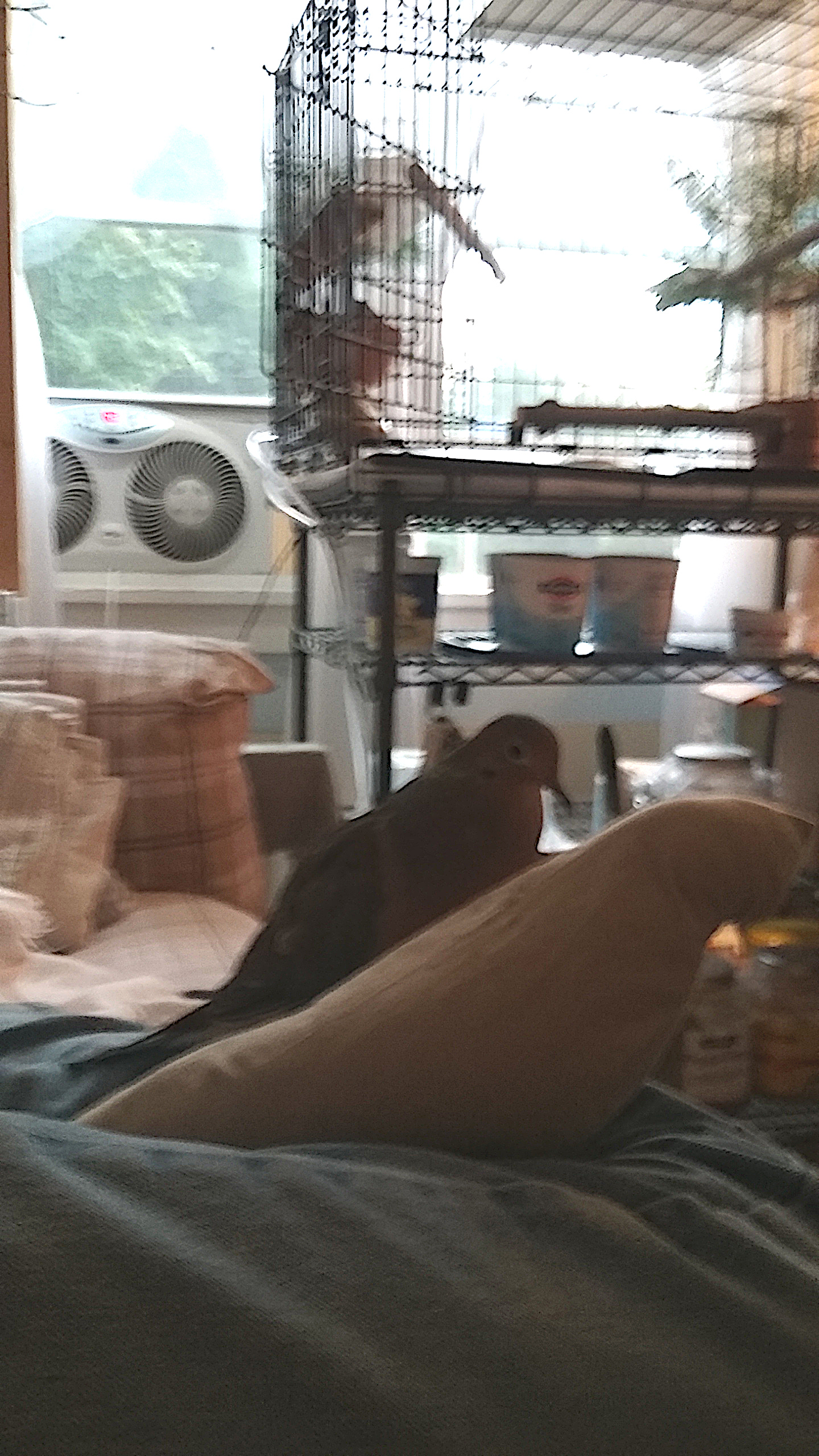 Mourning Doves are highly UNDER-rated and UNDER-appreciated and VASTLY MORE intelligent and sentient than people, especially the "experts" give them credit for being. I've actually made no conscious efforts toward changing Yonah's behaviours in any way in our time together. To the contrary... I've been working on adapting ME to HIS ways. And HIS ways include a LOT of contact, affection and playfulness! So I'll say that it stands to reason that, if Yonah can possess all these traits... ALL mourning doves do. And here we have it.