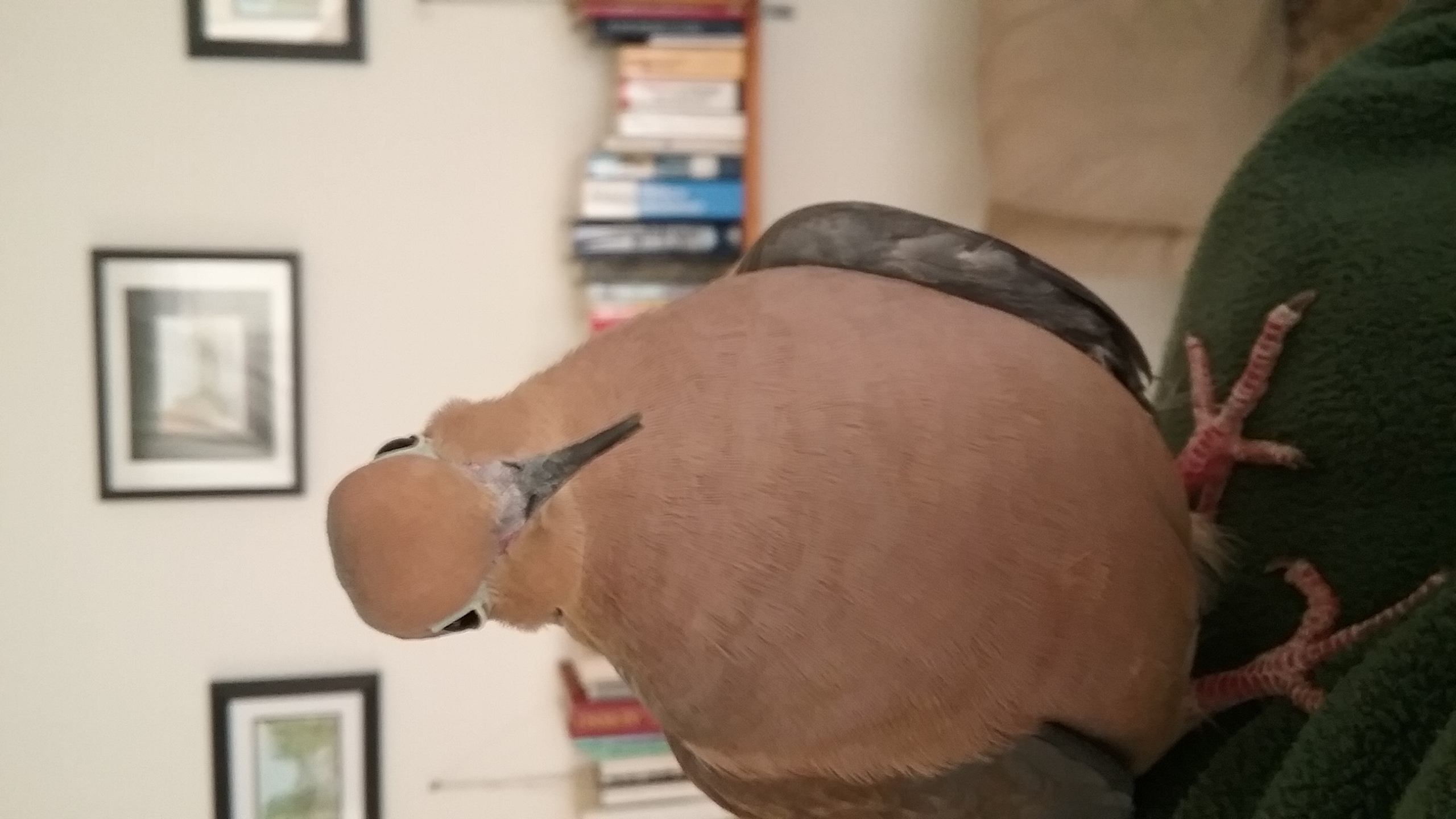 Mourning doves' life expectancy in the wild is but about 18 months at very best, I've read in many accounts on the internet. In spite of being “protected” by law, they remain one of the most-murdered birds, as “sport targets”. “Sport targets”... not sources of food, just “targets”, to humans who murder them for some incomprehensible, truly quite sadistic, alleged “fun”. HOWEVER, when conditions and situations are favourable, they've been known to live wonderful lives of 5 and even 20 years! They “mate for life”, they've been known to mourn the loss of a mate, and I've come to learn that, in the presence of a caring, Loving heart and soul, they'll “bond”... even with humans... one of their other-wise worst predators.