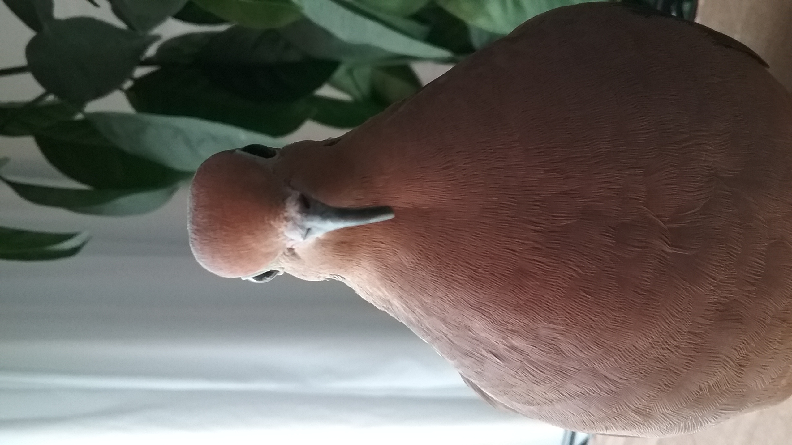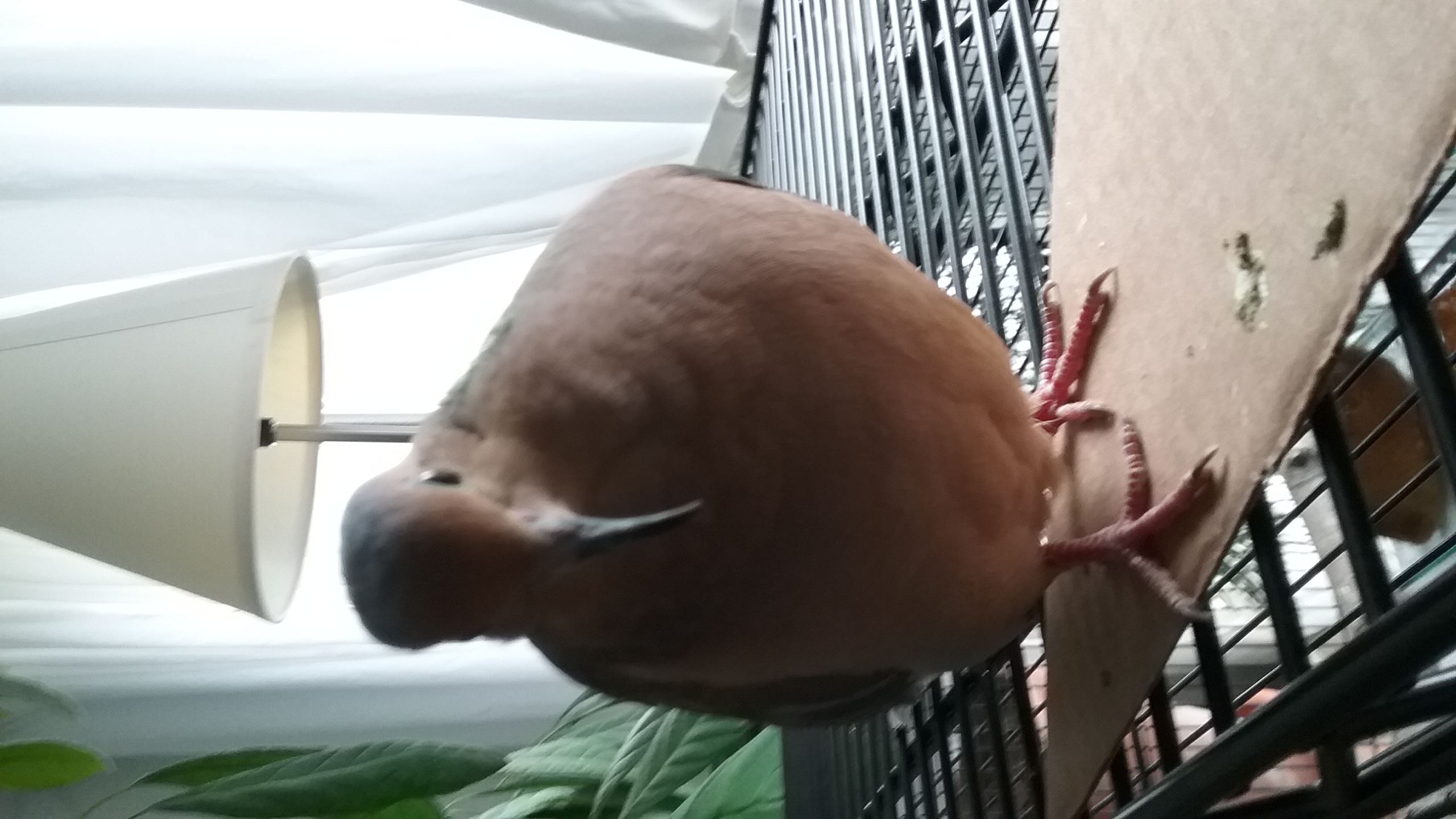 AND, TODAY, I GOT A RESPONSE FROM A POST TO A GUY IN AUSTRALIA, ON SOCIAL MEDIA, WHO RAISES CHICKENS, PIGEONS AND DOVES! I'd asked him (“Birdman”) for his opinion on Yonah's wing feathers. He suggests I pull them and see how they grow back. He pulls feathers on his “show-birds” regularly. Yes, I imagine he does. But I have one “tiny problem”: I DO NOT WANT TO PULL YONAH'S FEATHERS! DON'T WANT TO CAUSE HER ANY DISCOMFORT AND ESPECIALLY NOT THE TRAUMA! She doesn't associate me with “pain”, she doesn't see me as a “predator” or “threat”. It's taken ALL this time to develop what-ever relationship we have now, and I do NOT want to disturb that. If I MUST pull them for some reason, I suppose I'll just have to, but right now, I'm leaning more toward waiting... I suppose that, eventually, she'll lose the “awkward” feathers, as she moults. So I'll let “Nature” take course... at least for the immediate future. I feel safer this way. AND, HE RE-ASSURED ME SAYING THAT, IN HIS OPINION, UNLESS SHE'S FLYING AT “100%” SHE SHOULDN'T BE PUT OUT. (We agree there.) AND IF SHE DOES GO BACK OUT, SHE VERY WELL MIGHT JUST COME BACK, AS A “HOMING PIGEON” WOULD DO. Says he, it might be in her best interest, if I don't mind having her, to plan on her being here... permanently. (Ah... “if I don't mind”... OF COURSE I DON'T MIND! It's not what I'd intended, but I'll be damned if I'm going to toss her out of being where she's LOVED, CHERISHED, RESPECTED and PROTECTED, only to have her fall prey... torn to shreds!) he suggested getting her a “mate”. Truth is, I'd have to look into getting a “domesticated” dove, or, of course, if another one comes along injured, it would be most welcome, by me. I'd need a MUCH LARGER “house” for two. But... for now, it was such a comfort to see such a quick, friendly, informative, supportive response. Imagine... from a “stranger”, completely around the world! (Meanwhile, locally, I get “BS”. Oh, thanks to the internet!)