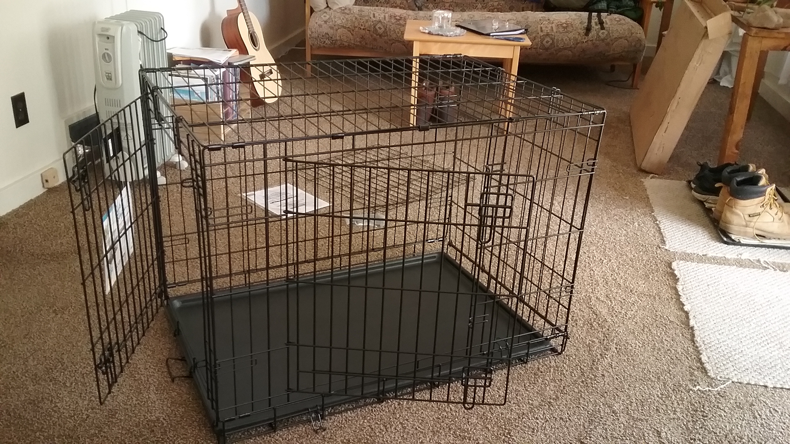 AND, I DO believe I've found a rather very nice new “house” for her! It's a “dog crate”, at a most reasonable price. Not available at present (or I would have ordered it immediately). “Large”! We're going for the “large” size because, I'm thinking in terms of Yonah staying here, “for as long as...”, unless those feathers on her wings improve and she manages proper flight. I WILL NOT PUT HER OUT WITH ANY DOUBT THAT SHE'LL BE ABLE TO FEND FOR HERSELF PROPERLY! It's not just a matter of how worry would gnaw at my heart and soul, wondering and worrying that she'd be perfect prey; it's more a matter of knowing that she's here because something attacked her, tried to rip her apart, for what-ever reason. She's already suffered through the trauma of being attacked, then the trauma of being brought into this house, but a “species” that her natural instincts told her was her “enemy”. She had NO way of knowing my intentions. She's had NO way of knowing, through these 6 months, that I wouldn't, couldn't harm her in any way. So NO, if there's even the slightest possibility that something or someone could cause her ANY more trauma... or harm... she has a house, a home... A HEART... right here. She'll always have good food, fresh water, warmth, protection from the winds, rains, snows... As I say, it was never my intention to “keep” her, but if it means giving her a long life, and if she's OK with what I can give... so be it. Here is her “HOME”.