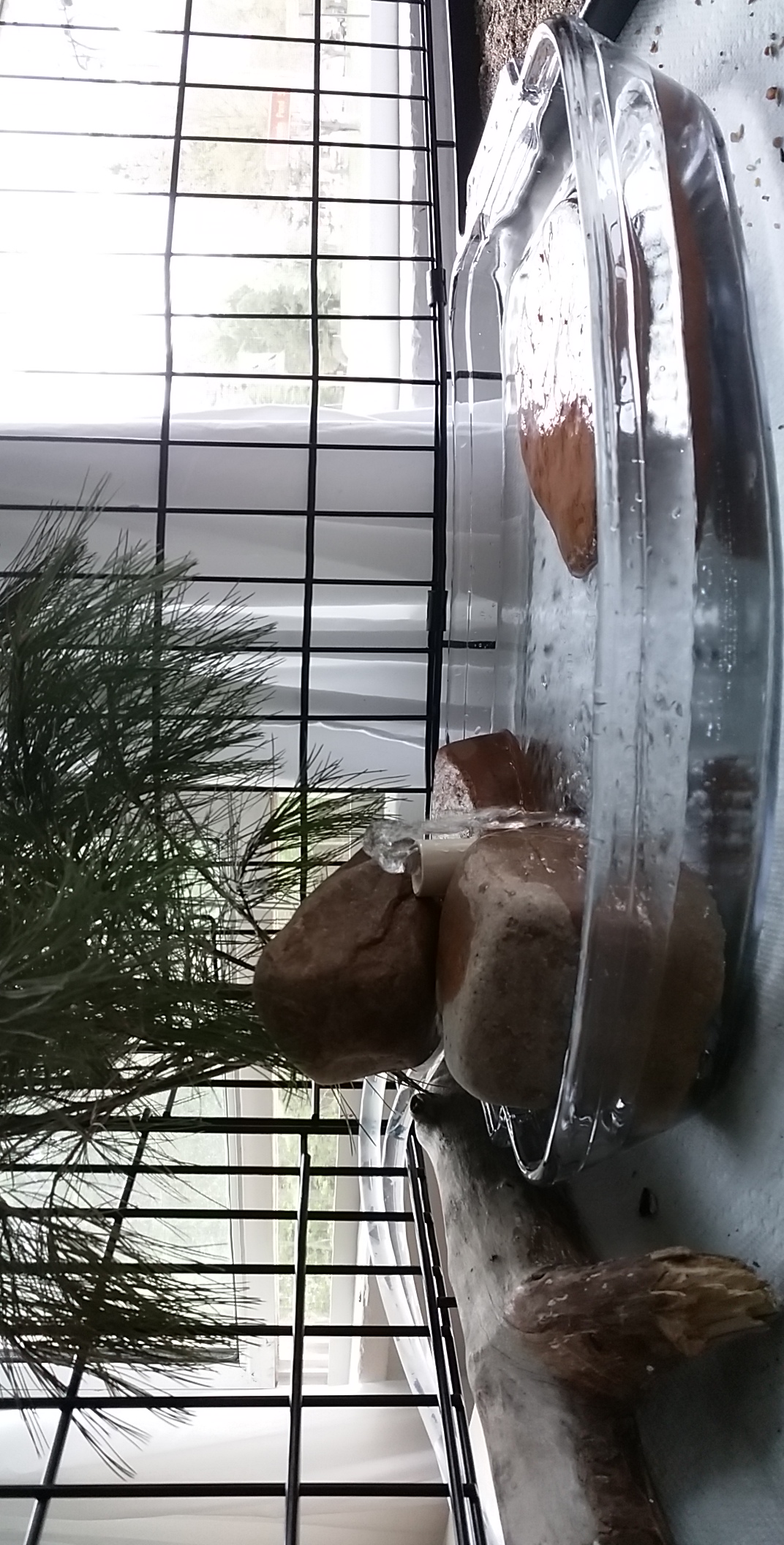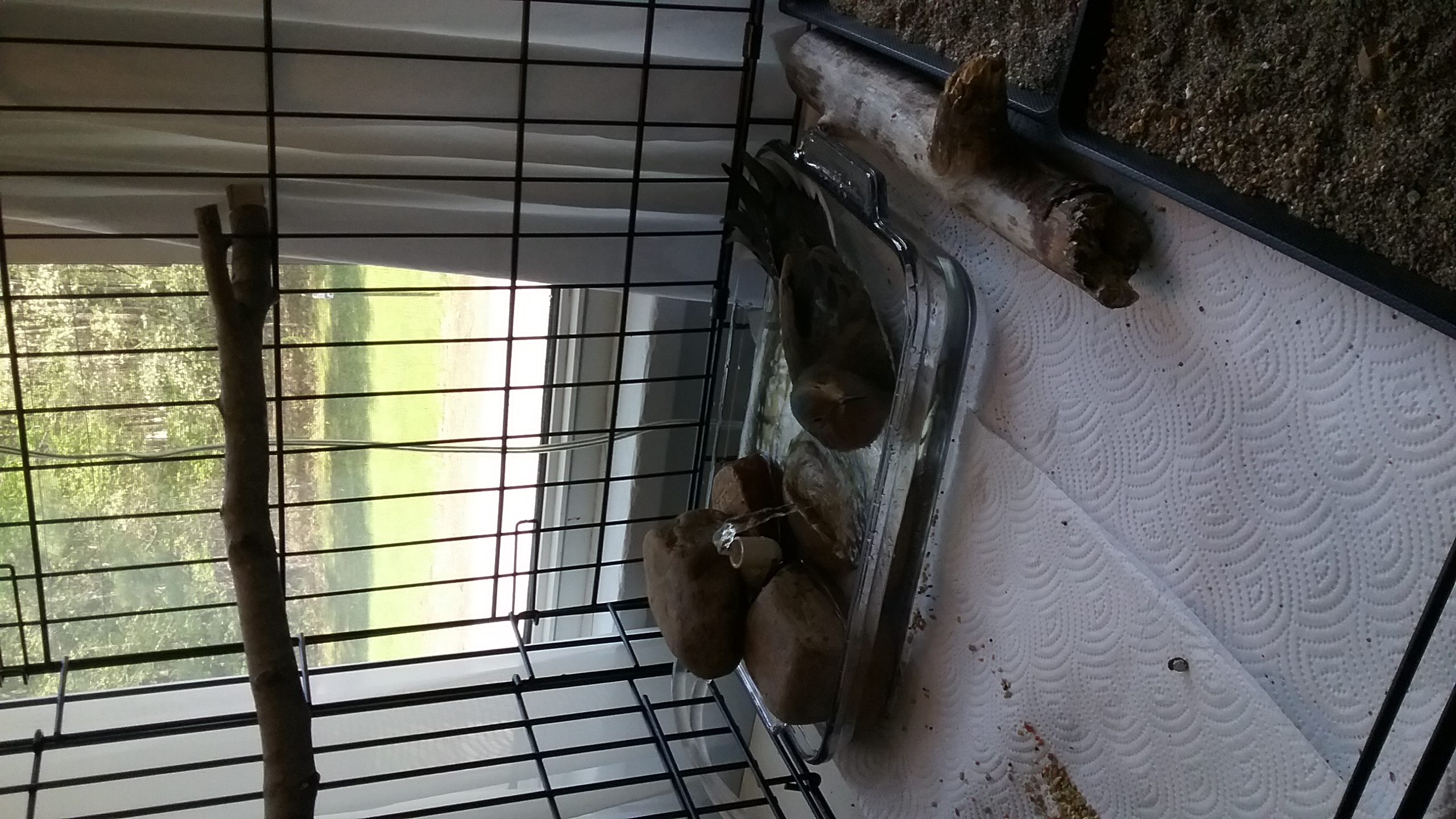 For all intent and purpose, as far as any of us knows, in all likelihood, I've saved her life, and now, her life and comfort is my continued responsibility. I have NO regrets nor gripes, and giving ALL that I possibly can (and, sometimes even more, if that's possible) is my honour now, my privilege. Making certain that she's comfortable and safe at all times, is my responsibility. There's so much (too much) that I don't know, but I do ALL that I can to LEARN, either from information I can find, mostly on the internet, but MORE from what she teaches me, in her way. She's well fed, with what appears to be some of the best, healthiest and most nutritious food. He always has plenty of fresh, clean water to drink AND to bathe in. Her house is kept clean, fresh paper (kitchen roll), white, so that I can see if, when, whether or not she's not feeling well (“poop check”), if there's anything in her house that shouldn't be there (insects, &c.). We “chat”, I try to “play”. I do my best to be a “best companion” to her... it's my obligation now. And, as I say... it's my honour and privilege. Ah, there's SO MUCH MORE I wish I knew... but I'm trying... always... to learn more and more... and more.