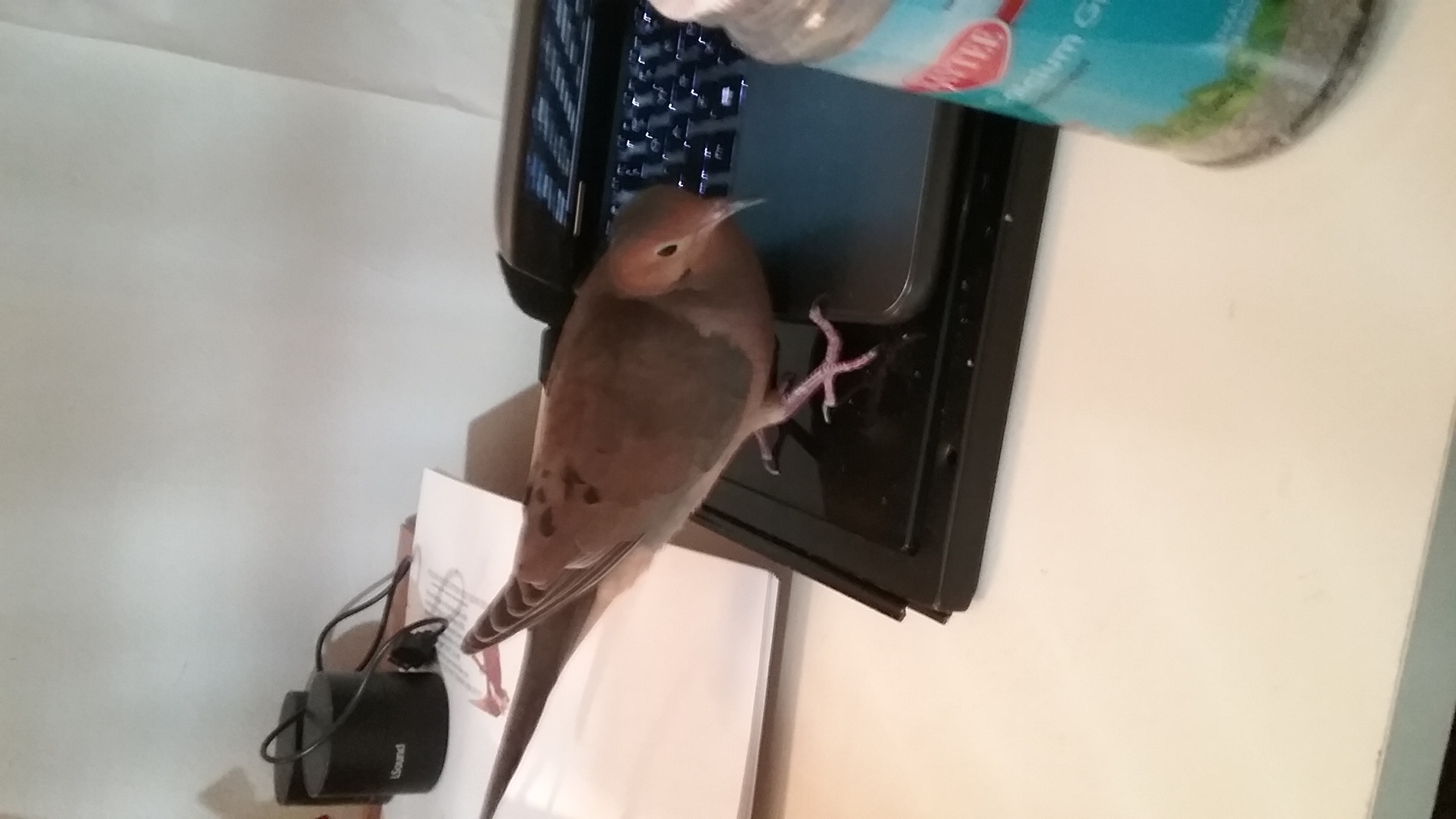First and foremost, to impress upon the reader(s), the closeness that Yonah has developed with me (and, I've no difficulty stating, it's truly quite mutual). He's a MOST AMAZING little bundle of feathered soul, cognizance, sentience! And EVERY person who has contact with a mourning dove who has ANY sort of “attachment” NEEDS to be aware of this AND to respect it! No matter who s/he might be. The “love” of a mourning dove is NEVER to be taken “lightly”, simply as a “granted matter of fact”, and NEVER, EVER to be ignored or made light of. They're as susceptible to being “hurt” as any human... in fact, I dare say, they're MORE susceptible than MOST humans.