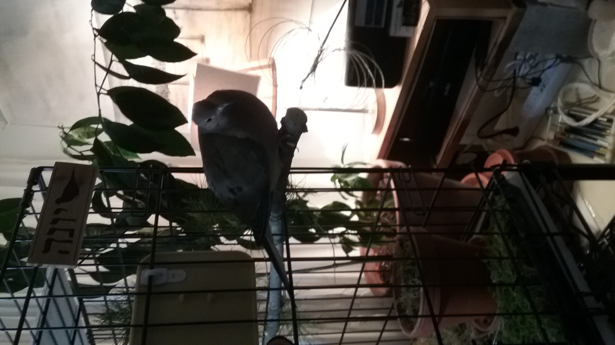 I got to my own “morning routine” whilst Yonah listened to his bird-songs and enjoyed the light of his NatSpec. In his room, the light was bright, the birds were chirping and coo'ing and it was delightfully warm and comfy. And Yonah? He “lounged” and took several flights about the place. Good exercise, those flights.