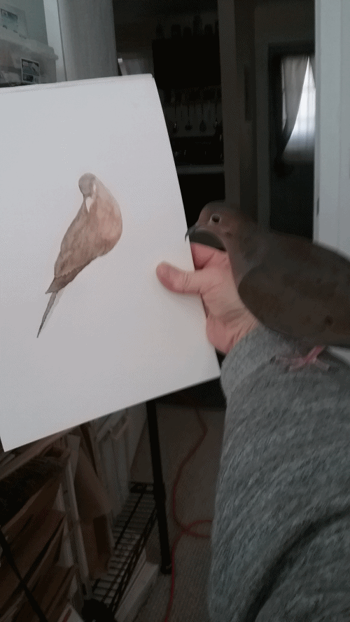 It was SO touching! Even with-out my interjection of speculation and such, to see him standing there! It's becoming difficult to think of him as a mourning dove... a little bird from the back yard... He's behaving more and more like a “toddler” or, what would be expected from a puppy! He's AMAZING! And if I weren't LIVING this experience, I probably wouldn't believe it if some-body else were to tell me these episodes! But they're TRUE! No exaggeration, even in the slightest. Yonah shows MORE “thought” than I've yet to see documented in my research.