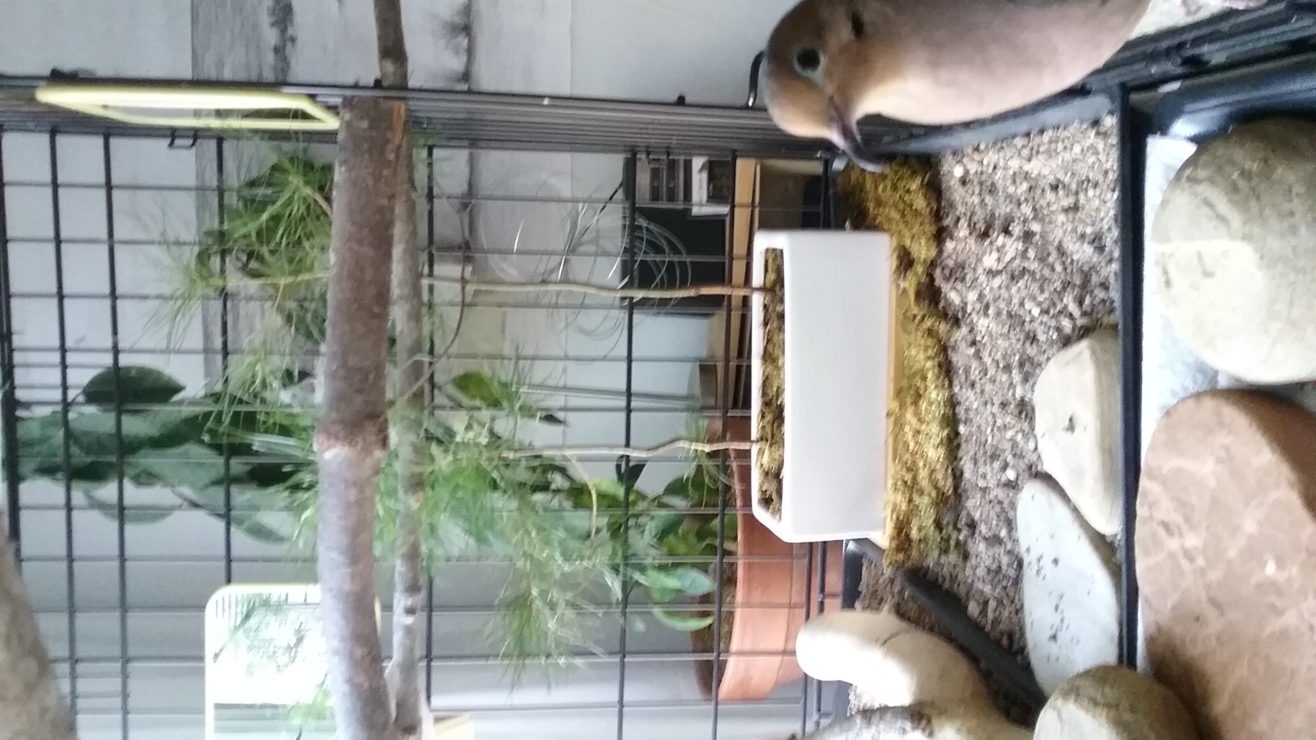Well then? OK. As much as I would truly LUV to just spend the night together with him, and I could well do, having the journalling and other matters to attend before I retire for the night, I checked his house... all was tidy. waters all fresh and clean, plenty of food available. The furnace had just stopped, so his room was quite cozy and warm... I put the roof board on, we exchanged a few more kisses... Lights out... “seepie-nigh-night” time had arrived.