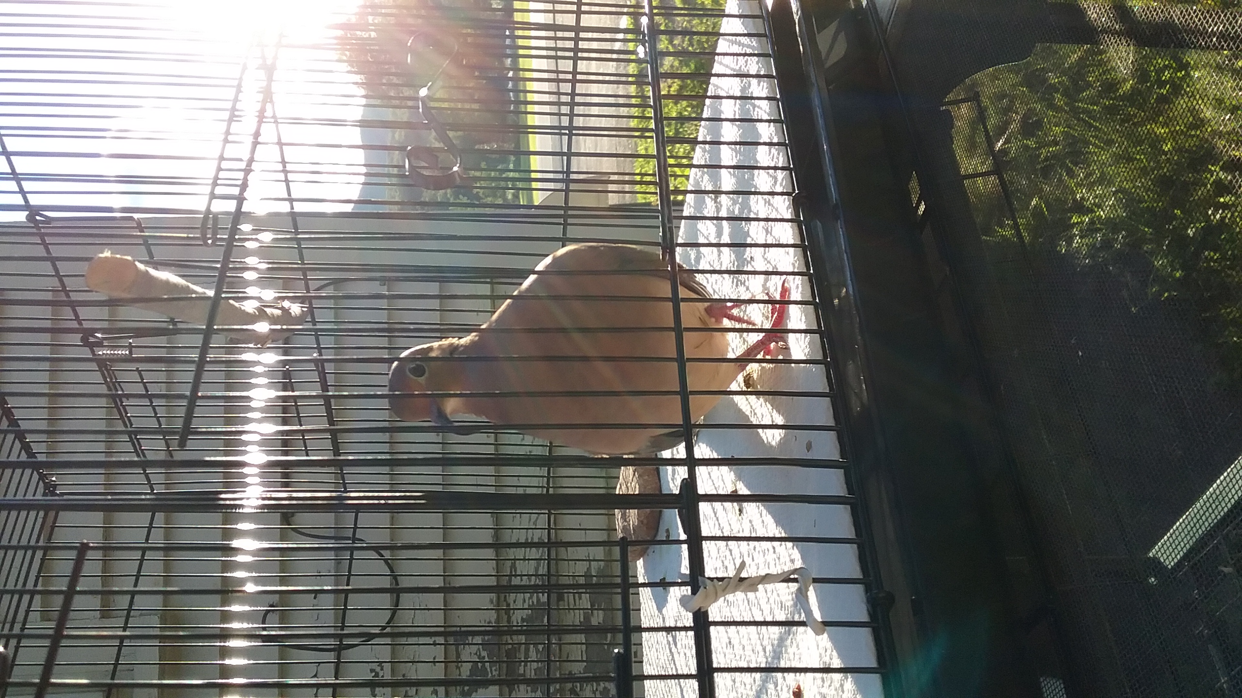 No sooner was Yonah's house set-up on the rack when he laid in the sunniest corner and SPLAYED, soaking in ALL of the light and warmth the sun had to offer. It's BEAUTIFUL seeing him looking so comfortable, and it's so obvious that he thoroughly enjoys the time, basking. And it does me good to know that he's getting his "UV" for his vitamin D and feathers. (And I'm still wondering how we're going to manage this, come the cold months of Winter. But, fortunately... we still have time to work on that project.)