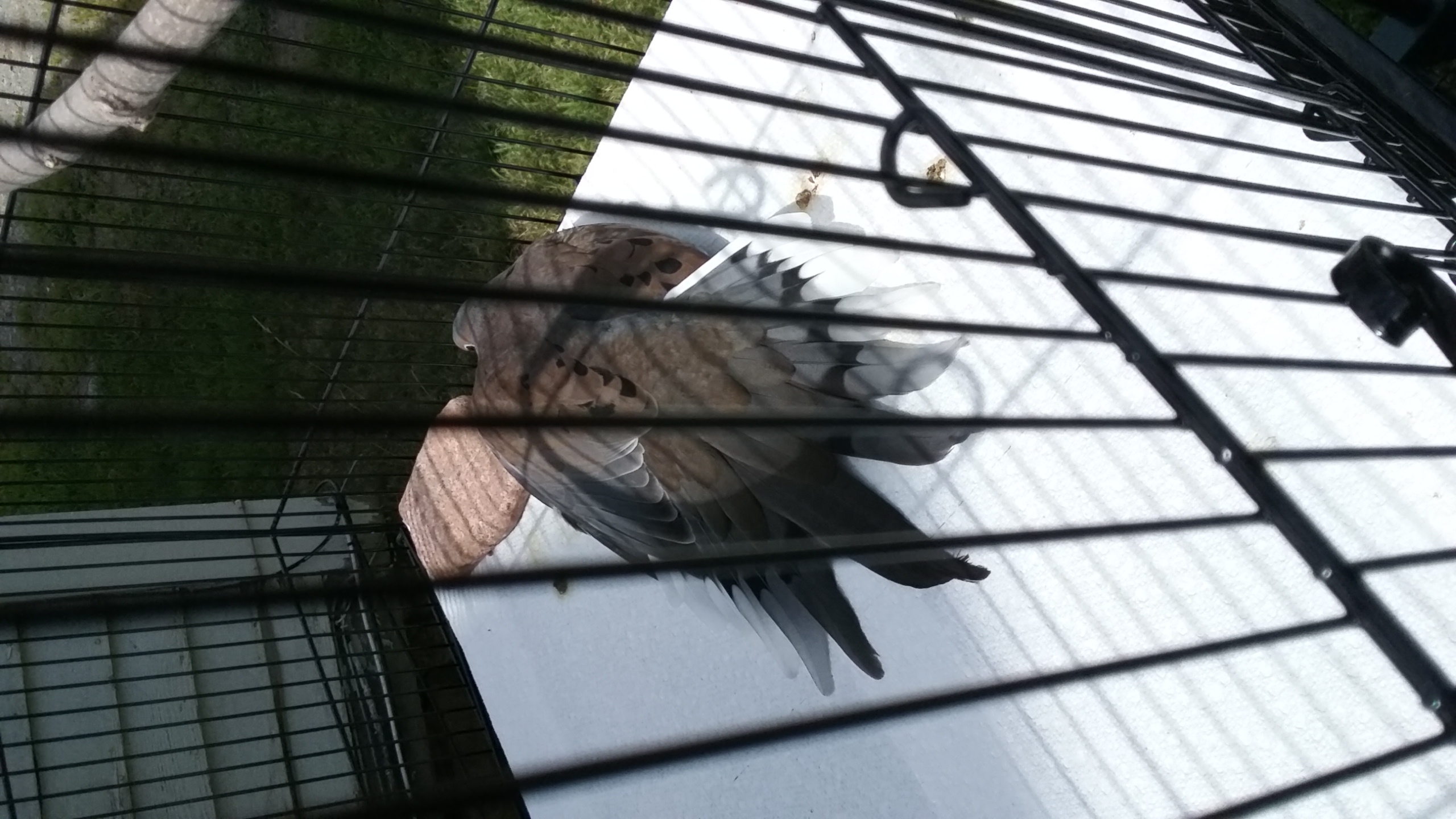 The sun was shining clearly at 18.00 when we'd done with our "evening nourishments" so I set-up his stand in the back yard and, at 18.30, we went out to catch the warm, bright rays. It was another hot and humid evening though, and I really don't know HOW Yonah manages in such weather but he seems to actually enjoy it. Then too, I remember that a mourning dove's base body temperature is about 40,5° (105°F). The 32-34° heat out in the yard is probably still "cool" to him. But, as the sun shone in the "sunny half" of his old house, he laid on his belly and splayed his wings and tail... literally capturing as much of it all as he possibly could. That's always such a wonderful sight to see. He looks SO calm and it's obvious he truly DOES enjoy it all. (Maybe, in addition to a "UV" light, I need to find some sort of bulb that would closer-mimic the light AND warmth of the sun... after all... Winter is coming - again - and this year I WILL make my Little Guy's darker months more pleasant... as is humanly possible.)