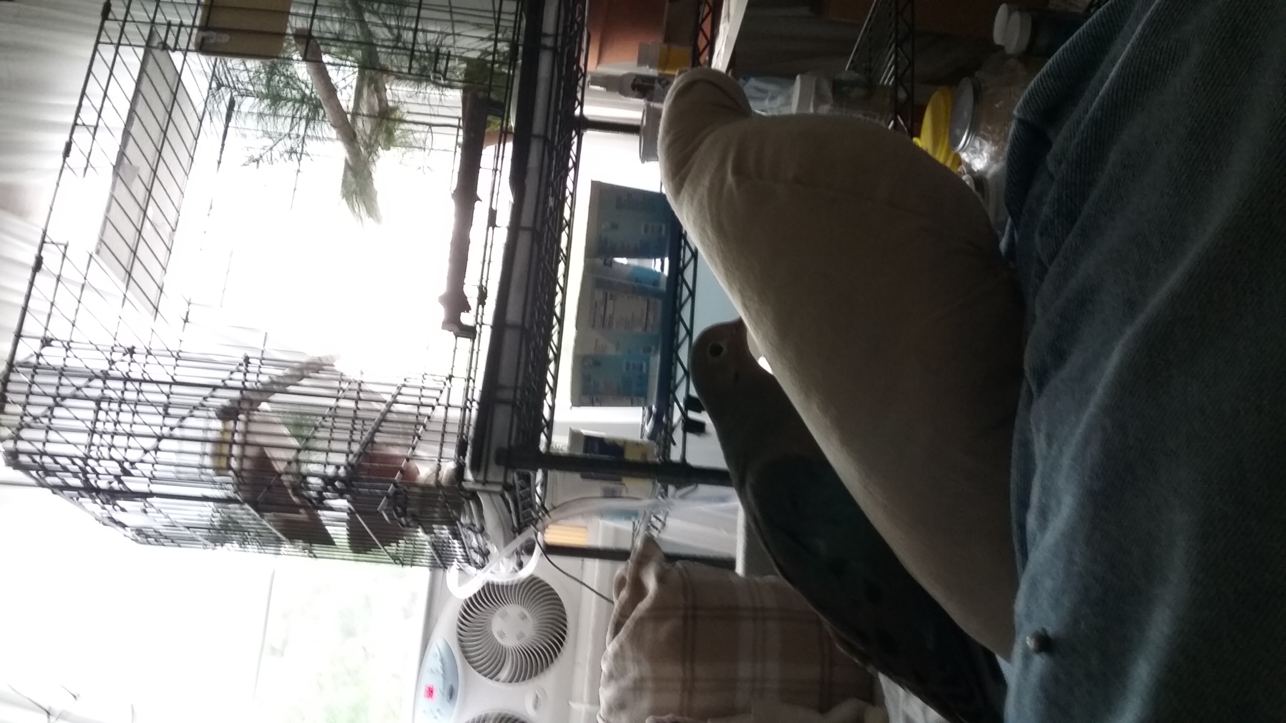 My heart was SO heavy this morning. I had a "business trip" that took me away from the house and, MOST IMPORTANTLY, from my literal "Heart-and-Soul"! It was still dark when at 4.30, I removed the blankets from Yonah's house and opened his door. I wasn't "there" when he woke this morning and I ached, to the core, thinking of him waking and calling "woo-HOO-hoo-hoo-hoo" and, for the first time sine we've been together, there would be no reply. BUT... "Fate" stepped in... "vehicle trouble"! I honestly couldn't have made that trip today! I didn't have to leave my Little Guy today! (And something from "inside me" believes that it truly was intentional... on the part of "Fate". After all, NOTHING in Creation is closer to the way Creation was intended, than this little feathered bundle of Life. So we were supposed to be together today. Perhaps it was because of being separated yesterday and that 2 consecutive days was "not meant to be". What-ever the case... ALL WAS WELL with the world... and I settled in to be together with my Heart-and-Soul.)